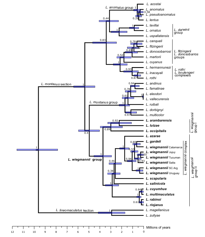 Un equipo de investigadores de Argentina, Brasil, Estados Unidos y Uruguay, del cual forman parte el Dr. Joaquín Villamil Lamas, becario posdoctoral del IPEEC - CONICET, y los investigadores Dr. Luciano J. Ávila y la Dra. Mariana Morando, de la misma unidad ejecutora, aplicaron un nuevo enfoque para analizar la diversificación del grupo de lagartijas Liolaemus wiegmannii, distribuidas en el Cono Sur de América. El trabajo, publicado recientemente en la revista Systematic Biology, evalúa las limitaciones de los modelos matemáticos utilizados para reconstruir árboles evolutivos y propone alternativas que mejoran la precisión de estos análisis.